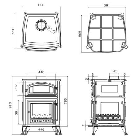 ESTUFA DE LEÑA CON HORNO Y COCINA TOTALMENTE EN HIERRO FUNDIDO MODELO ANTARES