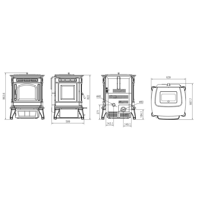 La estufa de pellets Máxima con cuerpo de fundición es una opción robusta y duradera para la calefacción del hogar. El cuerpo de fundición asegura una larga vida útil del producto, resistiendo el desgaste y manteniendo su eficiencia a lo largo del tiempo. Con una potencia de 12,83 kW y un rendimiento del 87%, esta estufa proporciona un calor eficiente y constante. La capacidad de la tolva es de 15 kg, lo que permite un funcionamiento prolongado sin necesidad de recargas frecuentes. En cuanto a sus dimensiones, la estufa mide 105 cm de alto, 54 cm de ancho y 51 cm de profundidad, y tiene un peso de 105 kg, lo que la hace estable y segura. Además, se pueden adquirir opcionales como el sistema de control por wifi y un mando a distancia, facilitando su manejo y programación desde cualquier lugar de la casa.